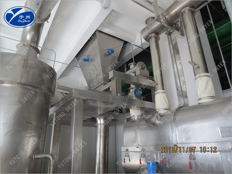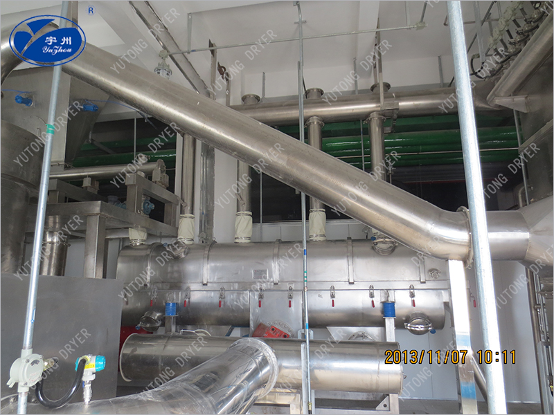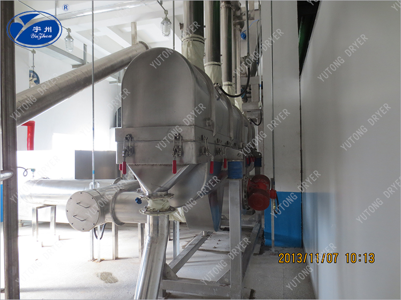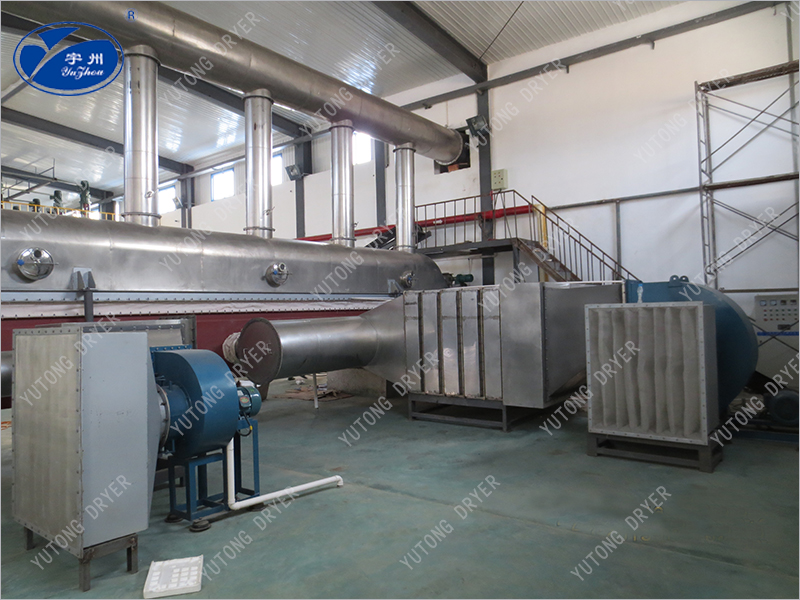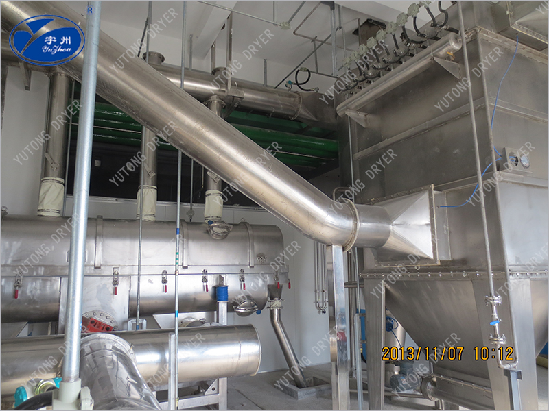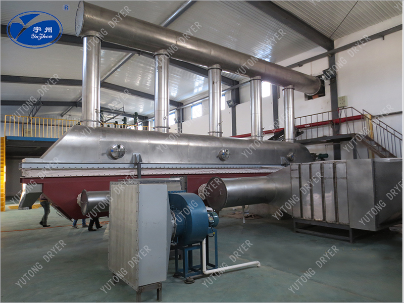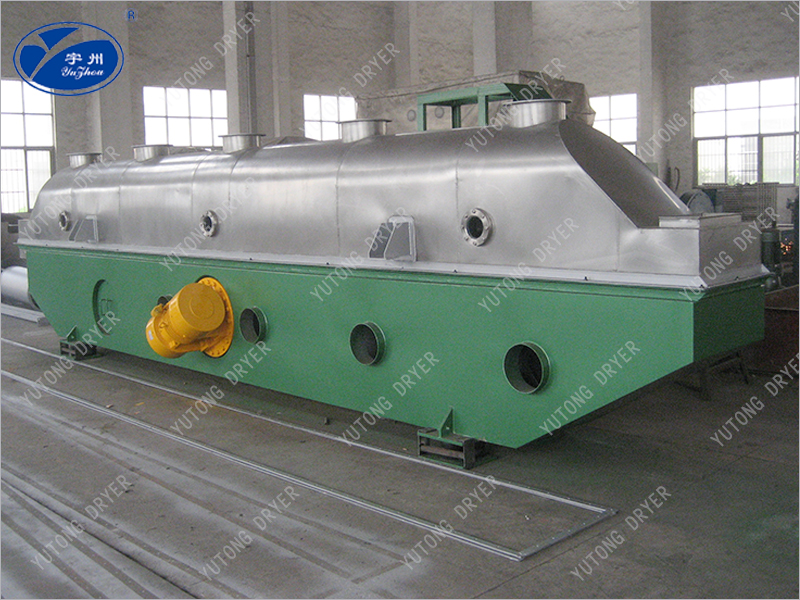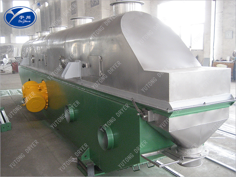3、由于施加振動(dòng),可使最小流化氣速降低,因而可顯著降低空氣需求量,進(jìn)而降低粉塵層夾帶,配套熱源,風(fēng)機(jī),旋風(fēng)分離器等也可相應(yīng)縮小規(guī)格,成套設(shè)備降低,節(jié)能效果明顯。可方便地依靠調(diào)整振動(dòng)參數(shù)來改變在機(jī)內(nèi)滯留時(shí)間。其活塞流式的運(yùn)行降低了物料粒度均勻性及規(guī)則性要求,易于獲得均勻的干燥產(chǎn)品。