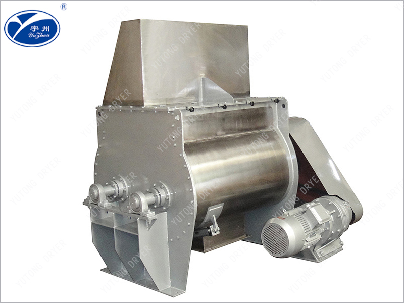 本系列混合機以強烈、高效混合為特點、臥式筒體內兩根攪拌等速反向旋轉,上特殊布置的槳葉確保物料徑向、環向、軸向三向運動,形成復合循環,在極短的時間內達到均勻混合。