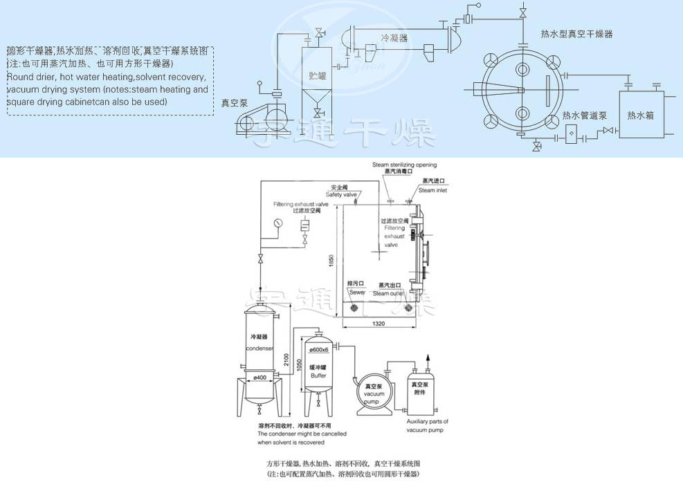 4、能低溫干燥不穩定或者熱敏性物料及含有溶劑及需要回收溶劑的物料。
