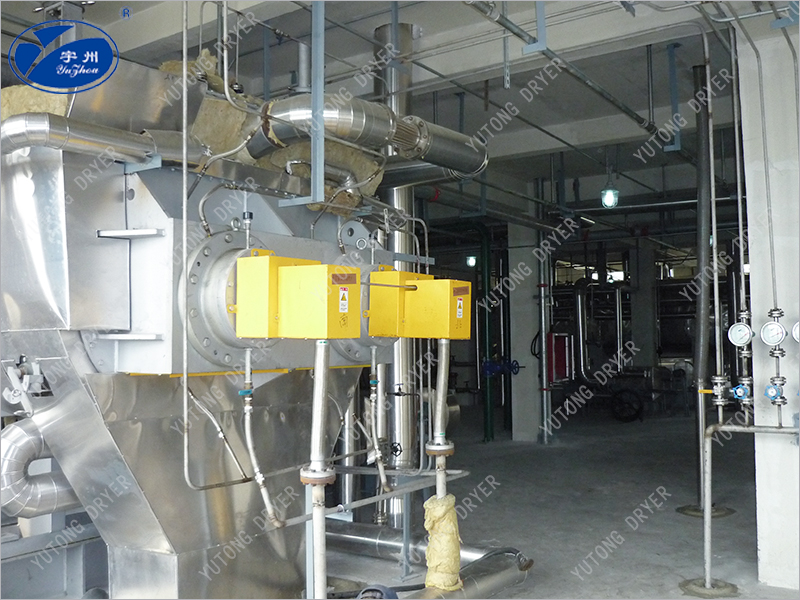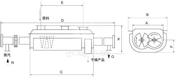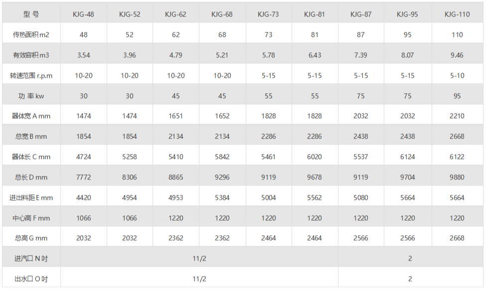 2、熱能利用率高,能耗低,裝料量可達筒體體積的70~80%,由于間接加熱,沒有大量攜帶空氣帶走熱量,干燥器外壁又設置保溫層,蒸發(fā)1kg水僅需1.2kg水蒸氣。