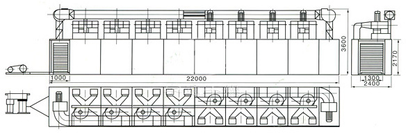 物料經(jīng)裝盤(pán)后,連盤(pán)帶車(chē)進(jìn)入隧道烘箱的進(jìn)口處,由傳動(dòng)機(jī)構(gòu)將其帶入隧道內(nèi), 烘車(chē)運(yùn)行速度可調(diào);冷風(fēng)從新風(fēng)補(bǔ)充口進(jìn)入離心風(fēng)機(jī),經(jīng)翅片式換熱器加熱后, 送入隧道箱內(nèi)與濕物料充分接觸,進(jìn)行熱量交換,物料內(nèi)的水分被蒸發(fā)為水蒸汽 ,與熱空氣一道進(jìn)入箱體側(cè)面的風(fēng)道內(nèi),一部分濕空氣由排濕口排空,另一部分 由離心風(fēng)機(jī)吸入后,循環(huán)使用;由于每個(gè)單元的物料的含濕量不同,每個(gè)單元的 排濕量與循環(huán)風(fēng)量的比例也各不相同;在整個(gè)干燥過(guò)程中,熱風(fēng)溫度也均不相同 ;干燥初期的物料含水率較高,可選用較高的熱風(fēng)溫度;干燥后期的物料含水率 較低,可選用較低的熱風(fēng)溫度。