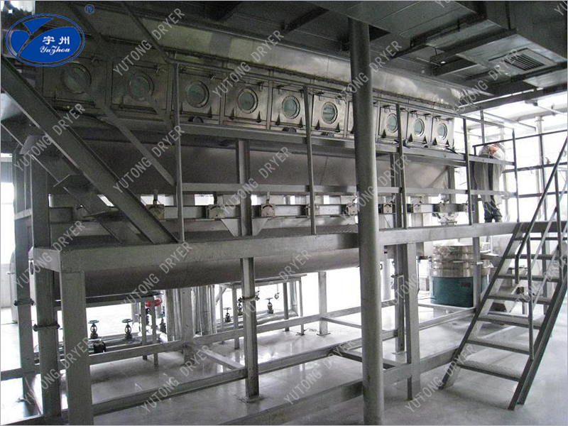 Чистый горячий воздух распределяется в кровать через клапанную пластину, а влажный материал, поступающий из питателя, кипит горячим воздухом. Из - за широкого контакта между горячим воздухом и материалом процесс теплопередачи усиливается, поэтому он может высыхать за относительно короткое время. При использовании непрерывного типа материал поступает с одного конца кровати, кипит и высыхает от нескольких секунд до нескольких минут, а затем автоматически вытекает с другого конца кровати. Устройство обычно работает под отрицательным давлением.