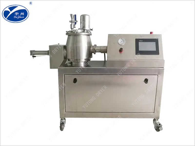 Порошковый материал и клей полностью смешиваются в цилиндрическом контейнере из нижней пасты, образуя влажный мягкий материал, который затем разрезается на однородные влажные частицы высокоскоростным шлифовальным лезвием, размещенным на боку。